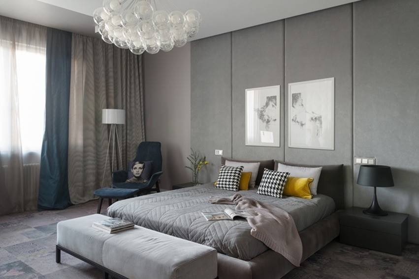 Интерьер должен быть тёплым, комфортным, законченным. Не должно возникать гнетущего ощущения, атмосфера должна быть приятной, настроенной на позитив. Идеально подходит стена у изголовья. Эта часть пространства остается пустой. Благодаря данному решению вид заиграет новыми красками.