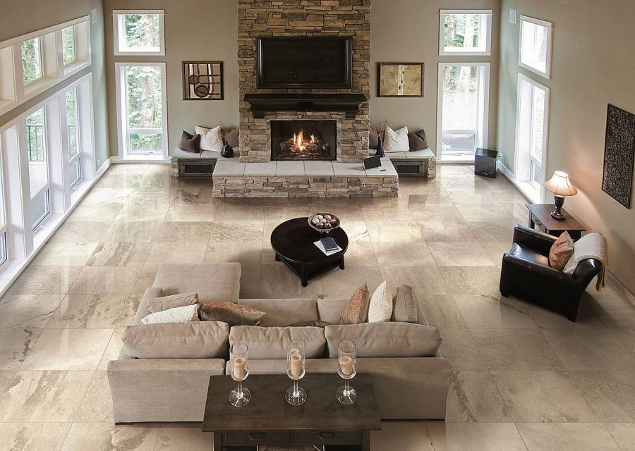 Керамогранит на полу в гостиной