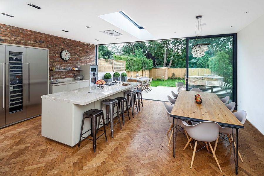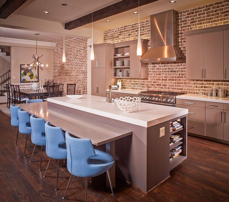 Мнение, что кирпичная стена не способна вписаться в интерьер современной кухни, уже устарело. Это доказывают многочисленные проекты, которые представляются на суд интернет-сообщества каждый день. Фактически открытая кладка в современной кухне выделяет и подчёркивает особенности архитектуры помещения. Если всё сделать правильно, то смелый и внушительный акцент в виде кирпичной стены будет служить вам верой и правдой годами.