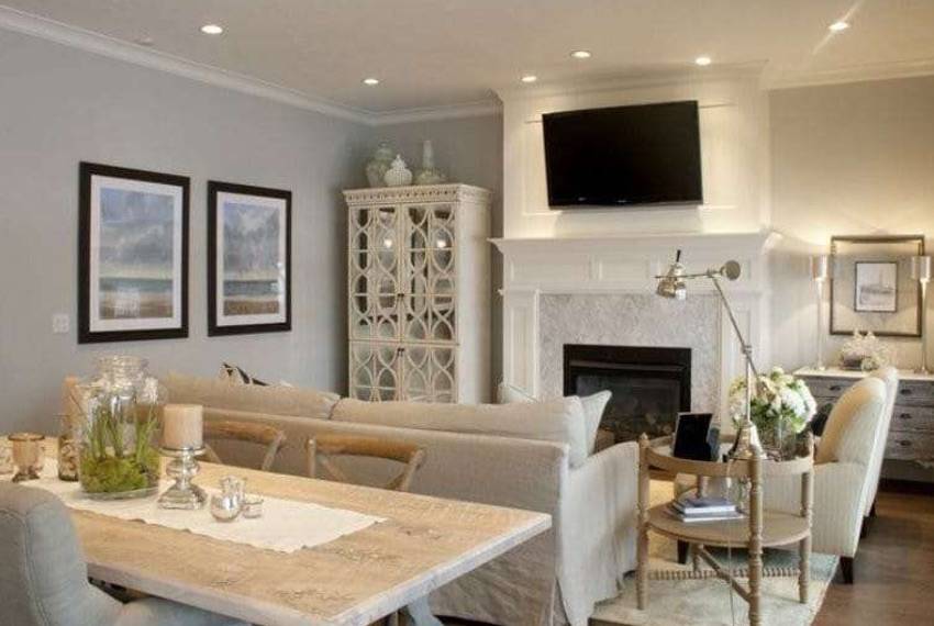 Если ты боишься, что гостиная 17 кв.м. будет слишком перегружена, выбирай для нее максимально нейтральную цветовую гамму. Чистый белый цвет бывает скучноват, а вот многочисленные теплые и холодные оттенки серого легко справятся с поставленной задачей.