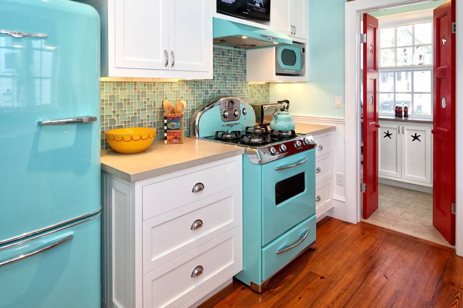 Стилизованная техника позволяет создать ретро стиль на кухне