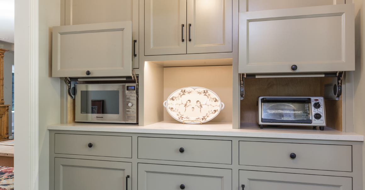 В кухне лучше заранее спроектировать место для размещения варочной панели и духового шкафа, элегантно вписать мойку и спрятать вытяжку, интегрировать посудомоечную и стиральную машины, сделать выдвижные секции для газовой плиты, микроволновки и даже барной стойки.