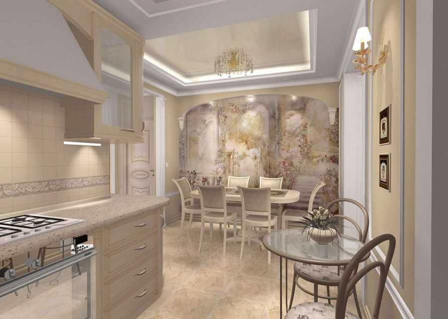Если из кухни есть выход на лоджию, целесообразно объединить эти пространства. Планировка интерьера кухни гостиной в классическом стиле заключается в сочетании элементов дизайна и стиля обоих помещений.