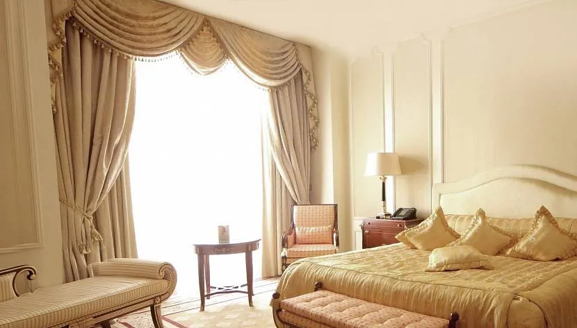 Считается, что итальянские шторы идеальны для высоких окон в спальнях.
