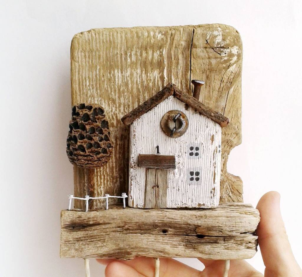 Смотрится такой домик очень уютно. Появляется ощущение, что в доме действительно кто-то живет, ведь в окнах горит свет (гирлянда). Это интересное дизайнерское решение придется по вкусу всем любителям уютных вещей.