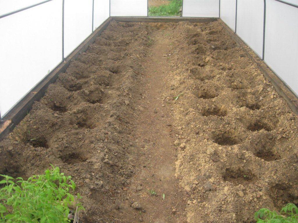Расстояние между лунками должно составлять 30-40 см для низкорослых сортов томатов и 50-60 см для высокорослых сортов.