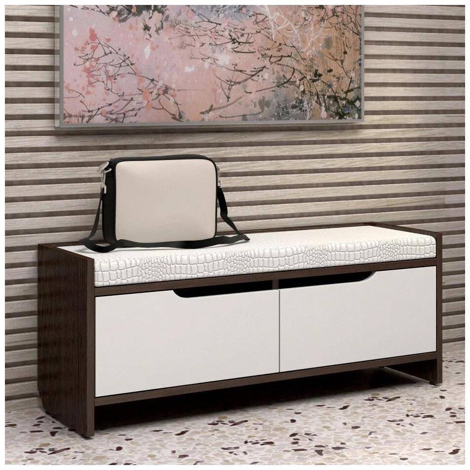 Этот вид идеален для тех, кто любит комфортно обуваться. Конструкция отличается тем, что сверху такой полочки под обувь находится сиденье, которое может быть как мягким, так и жестким. Модель может быть дополнена спинкой, тумбочкой для мелочей или вешалкой. Обычно полки-скамейки для обуви не предусматривают дверок, и туфли хранятся в открытом виде. Благодаря этому кроссовки, босоножки или ботинки, которые носятся постоянно, проветриваются и просыхают. Размеры такой мебели небольшие — она с легкостью может вписаться в маленькую по квадратным метрам прихожую. Но следует учитывать, что много обуви такая конструкция не вместит.