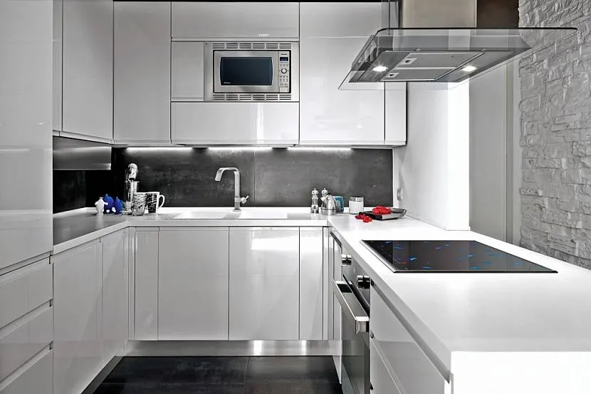 - Для сохранения чистоты на кухне необходим фартук из закаленного стекла или керамической плитки.