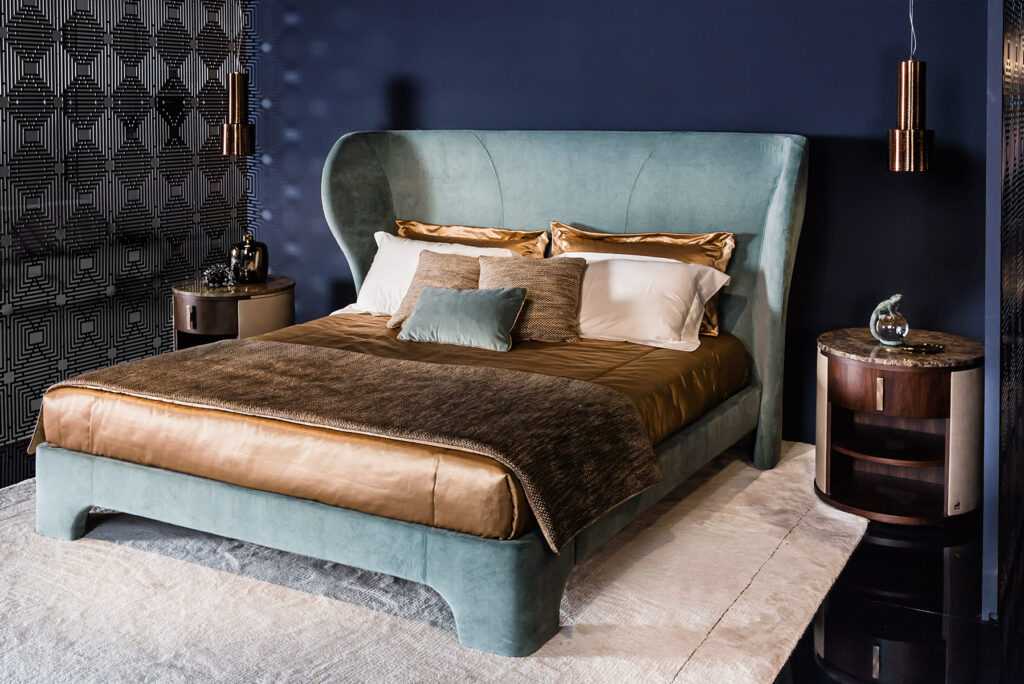 - золотом оформляется стена в изголовье кровати, остальные стены декорируются белым;
