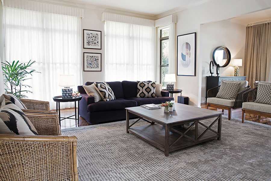 Гостиная в коричневых тонах всегда получается уравновешенной. Универсальность палитры позволяет включать в оформление самые разные оттенки.