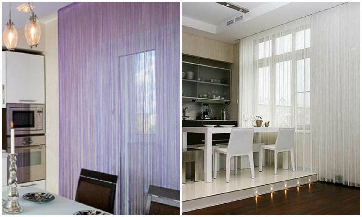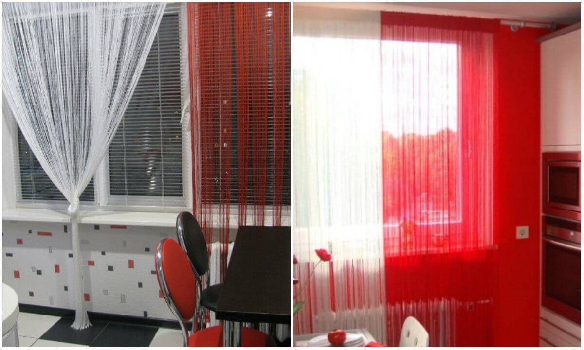 - Эко-стиль. Подходят необычные нитяные занавески, бамбуковые роллы или жалюзи, бумажные занавески.
