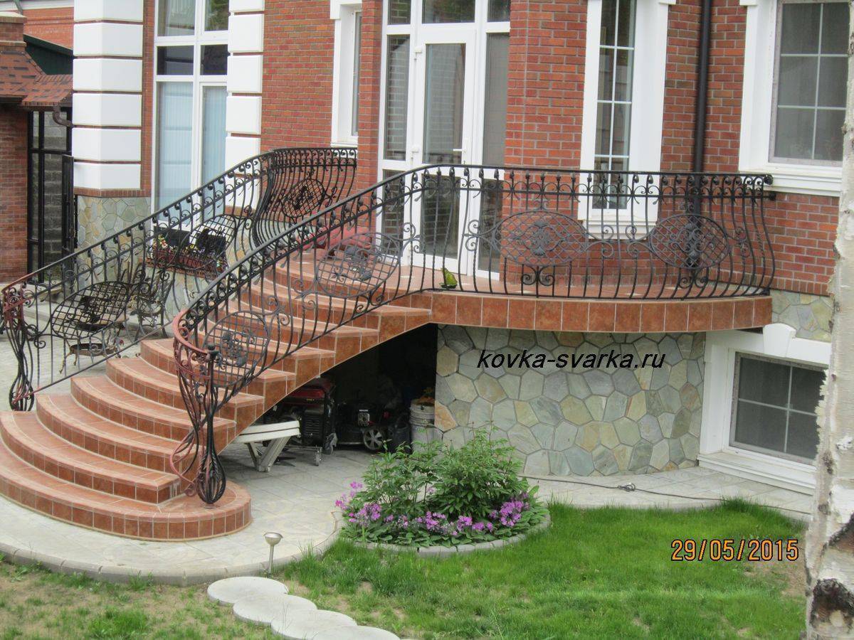 На первый взгляд, такая конструкция кажется легкой, но это впечатление обманчиво. Выкованные детали довольно массивные, поэтому вначале следует укрепить балкон. Такое сооружение придает строению изящный и грациозный вид, да и внутренняя часть пространства здания будет светлее.