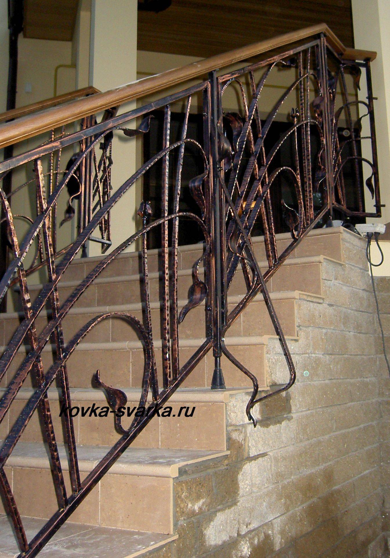 Заполнение кованых перил представляет собой элементы, расположенные в пролетах между стойками. В качестве деталей могут применяться вертикальные балясины, а также различные композиции.