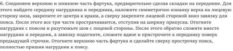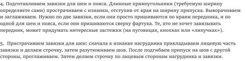 В этом случае весь фартук кроится как одна деталь со швом по средней линии спинки.