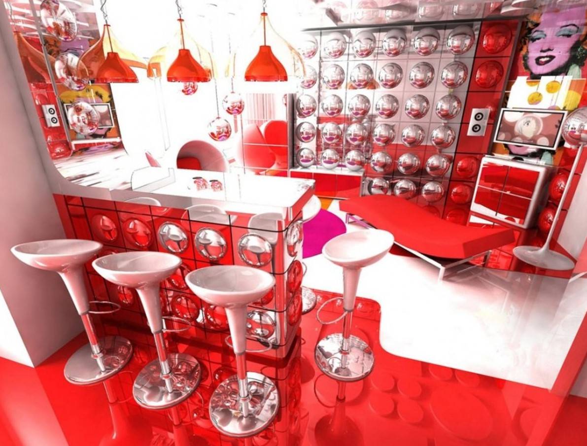 И почему-то мы уверены, что хозяин интерьера хотел подчеркнуть красный цвет, но просто переборщил.