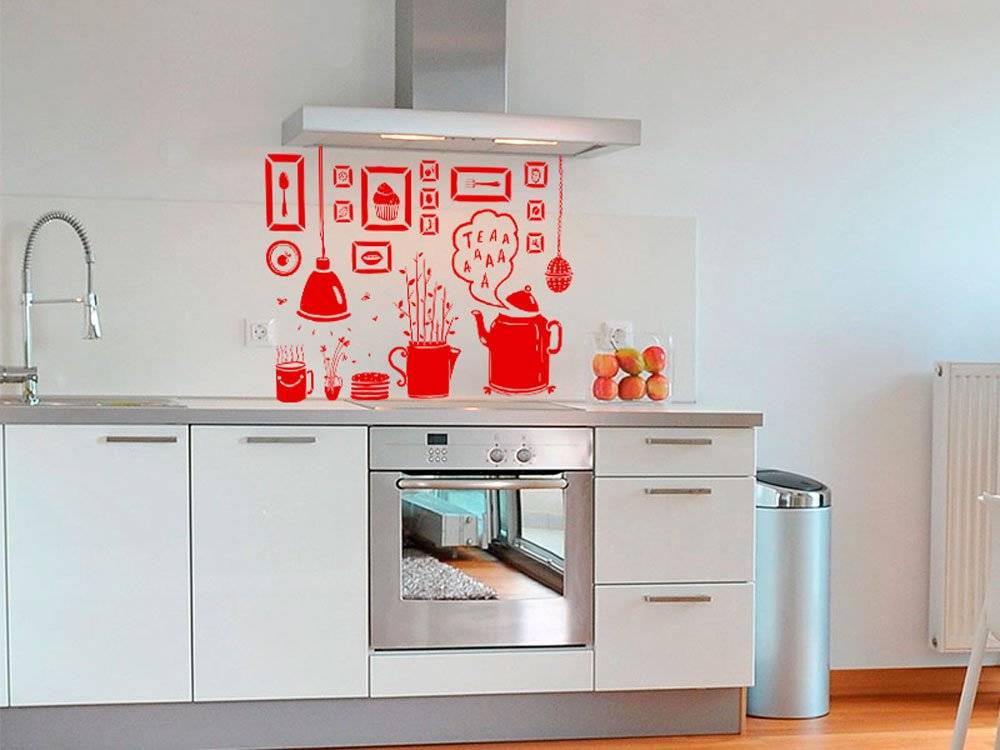 Керамическая плитка клубничного, вишневого или клюквенного оттенка найдется в продаже без труда. Но нет смысла выкладывать ею всю площадь, вполне достаточно, например, оформить зону фартука. Специальными моющимися обоями обклеивается окружающее пространство, кроме рабочей зоны. Популярное решение – покраска, а также фактурная штукатурка.