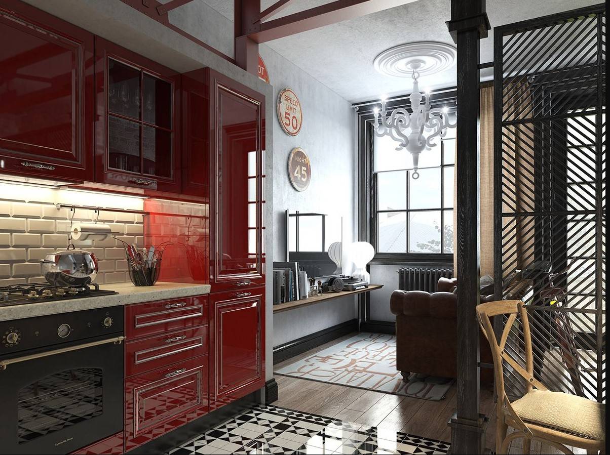 Если хочется подчеркнуть свой небанальный вкус, попробуйте оформить кухню в стиле поп-арт. Это игра на грани фола с контрастными цветовыми акцентами, и красный прекрасно подходит для решения подобных задач. Если часто результат получается крайне эклектичным, не стоит печалиться. Это в традициях стиля.