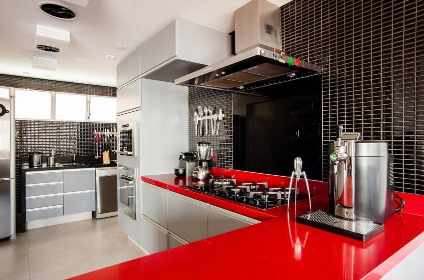 Многие люди считают дизайн красно-черной кухни слишком броским и вызывающим. Тем не менее при грамотном сочетании этих цветов получится создать не только привлекательное, но и уютное помещение. Контрастное применение черного цвета на фоне красного не рекомендуют использовать закрытым людям, так называемым интровертам, которым такие цвета совсем не подходят. Основные преимущества кухни в красно-черном цвете: