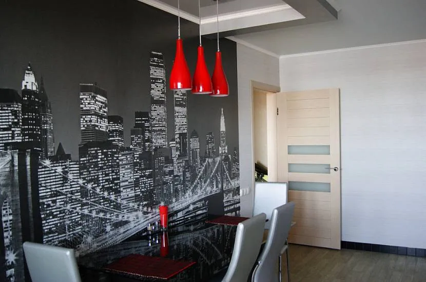 Для отделки кухни в красно-черной гамме дизайнеры советуют использовать обои нейтральных светлых оттенков с гладкой текстурой, однотонные и без орнамента. Они подчеркнут достоинства интерьера и выступят хорошим фоном для основных его тонов.
