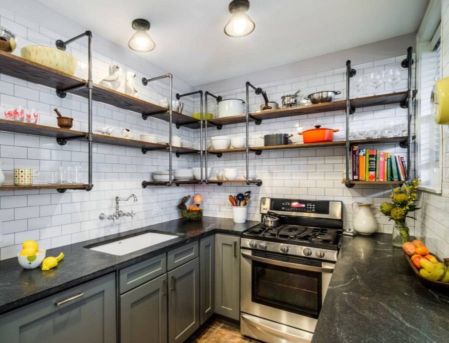 Для того чтобы успешно и грамотно использовать кухонное пространство, необходимо изначально спроектировать полную обстановку. Оформление интерьера зависит от пожеланий владельцев объекта недвижимости, модных тенденций, финансовых возможностей. В случае, когда бюджет ограничен, можно оборудовать большое количество полок и шкафов, которые дадут возможность складывать максимум кухонного инвентаря.