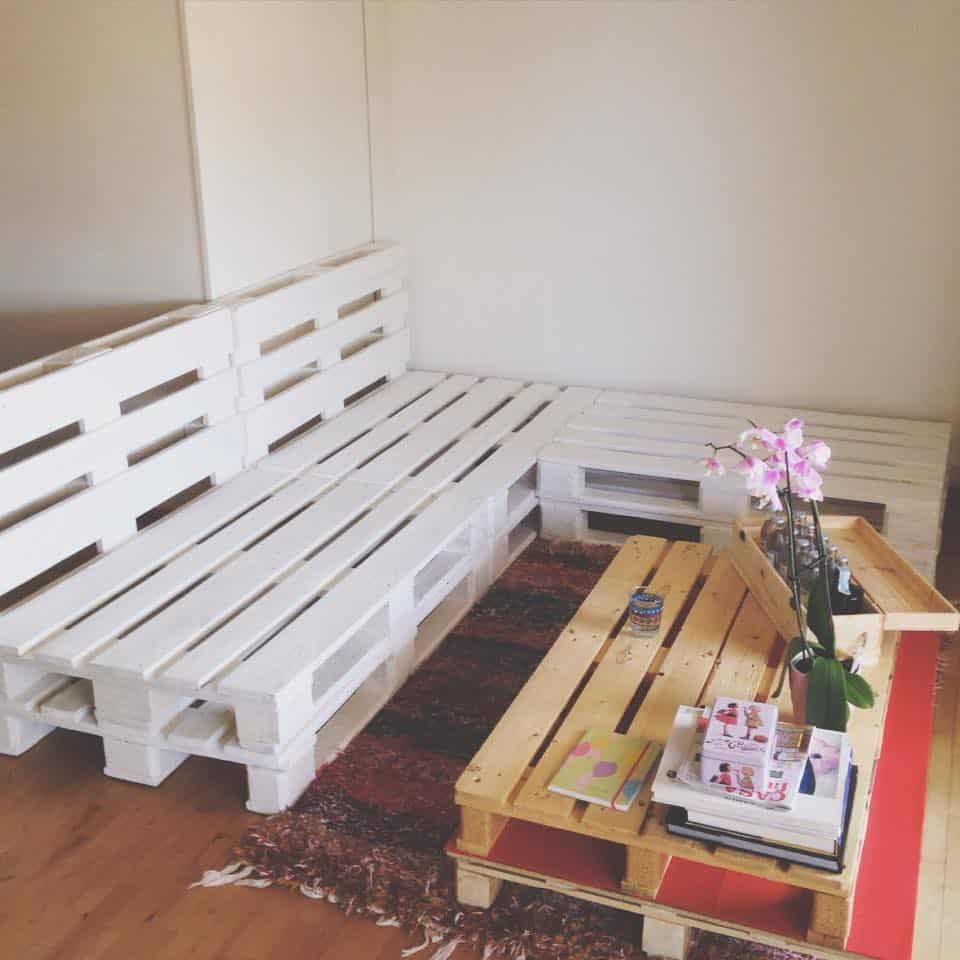 Процедура действительно проста, и даже менее опытные профессионалы могут справиться с ней. Возьмите один поддон, который вы очищаете от грязи. Вверните одинаково большие части от другого поддона в каждый угол поддона, который будет служить ножками.