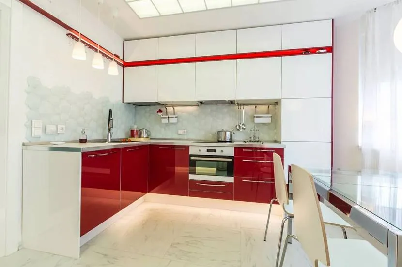 Кухня в бело-красных тонахИсточник gazeta-pravo.ru