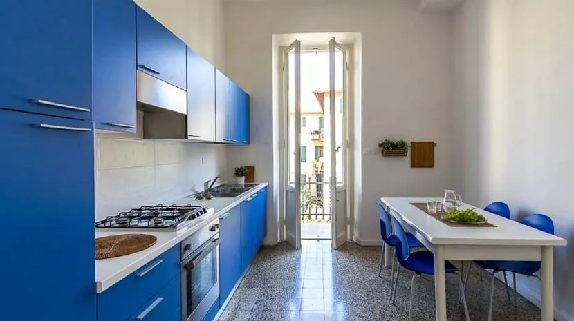 Яркий синий гарнитур на кухне 10 кв.мИсточник legko.com