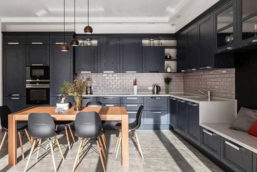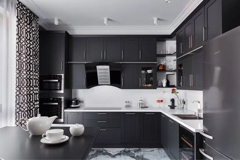 Многие люди боятся использовать черный цвет в интерьере, ведь он ассоциируется с темнотой и является довольно таинственным. Однако при правильном сочетании цветов в интерьере, даже черный фасад кухни бьет выглядеть дорого и стильно.