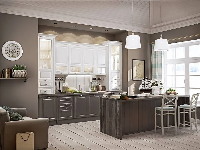 Более современно выглядят кухни в неоклассическом стиле, являющимся по сути той же классикой, но на новый лад