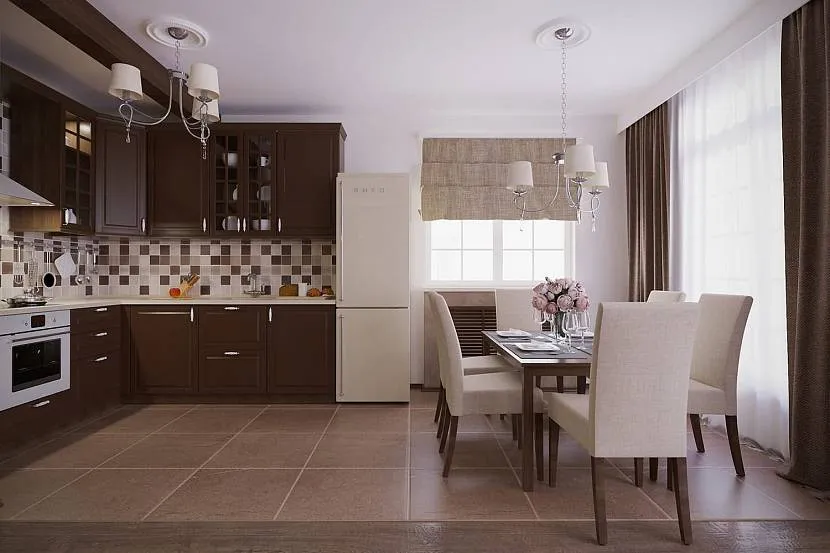 Что касается оттенков, то на кухню 12 кв лучше выбирать светлые или средние тона насыщенности, так как темно-коричневые могут создать мрачную атмосферу и значительно уменьшить пространство.