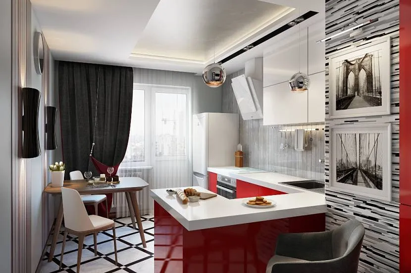 Также важно понимать, какую площадь выделить под каждую зону. Площадь зависит от предпочтений хозяев: любят ли они кулинарные эксперименты и долгие застолья, или предпочитают быстрые перекусы перед телевизионным экраном. С красным акцентомИсточник lakbermagazin.hu