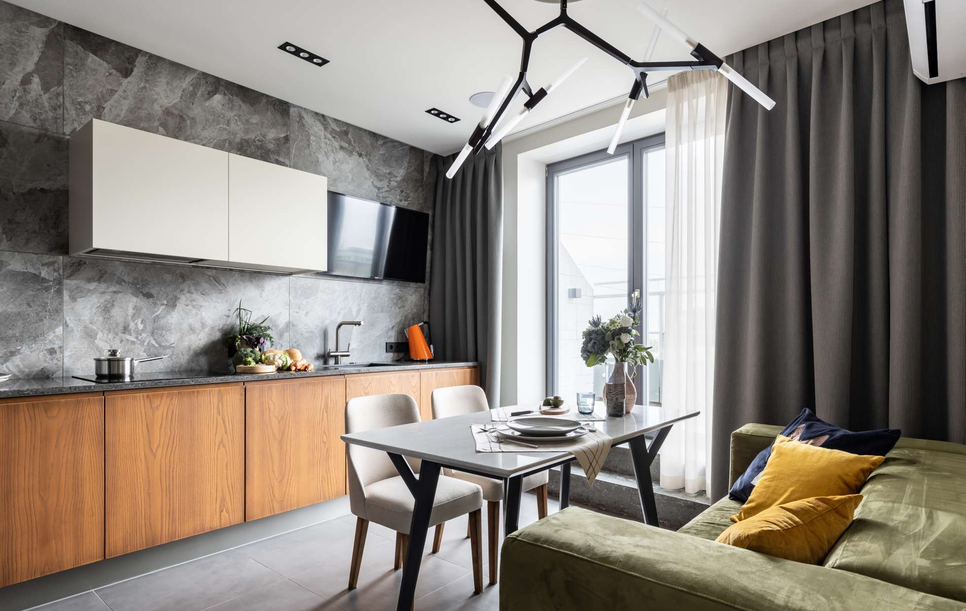- встроенная бытовая техника и умные доводчики, которые обеспечивают бесшумное закрытие дверей, а также другие незаметные высокотехнологичные удобства.
