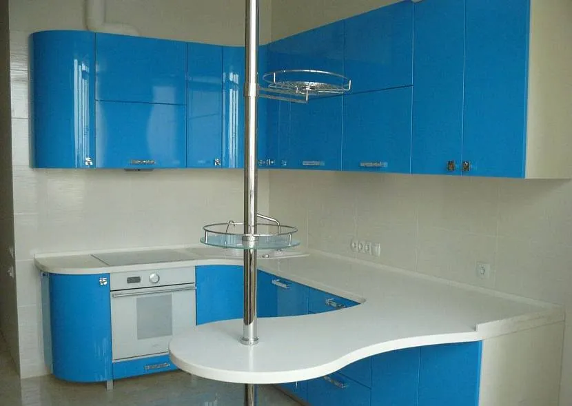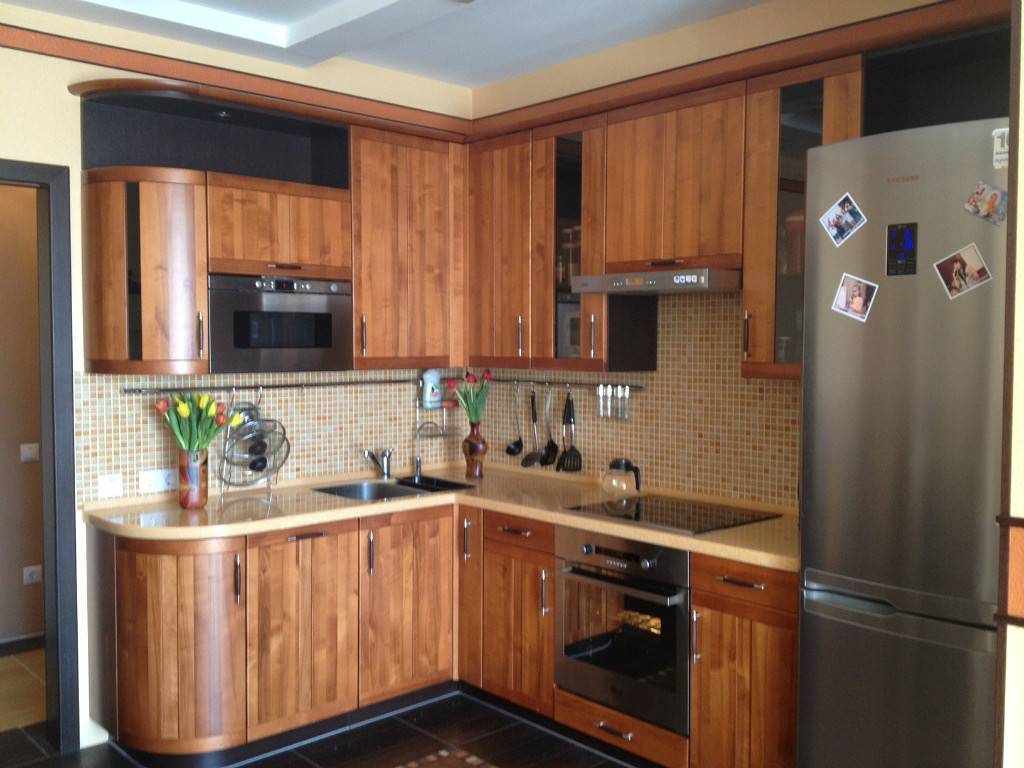 Комплект мебели кухни скруглен, отдельный шкаф заполнет пространство углаИсточник i1.photo.2gis.com