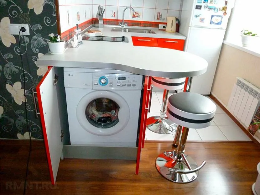 Стиральная машинка внутри барной стойки скрыта за дверцейИсточник remont-samomy.ru