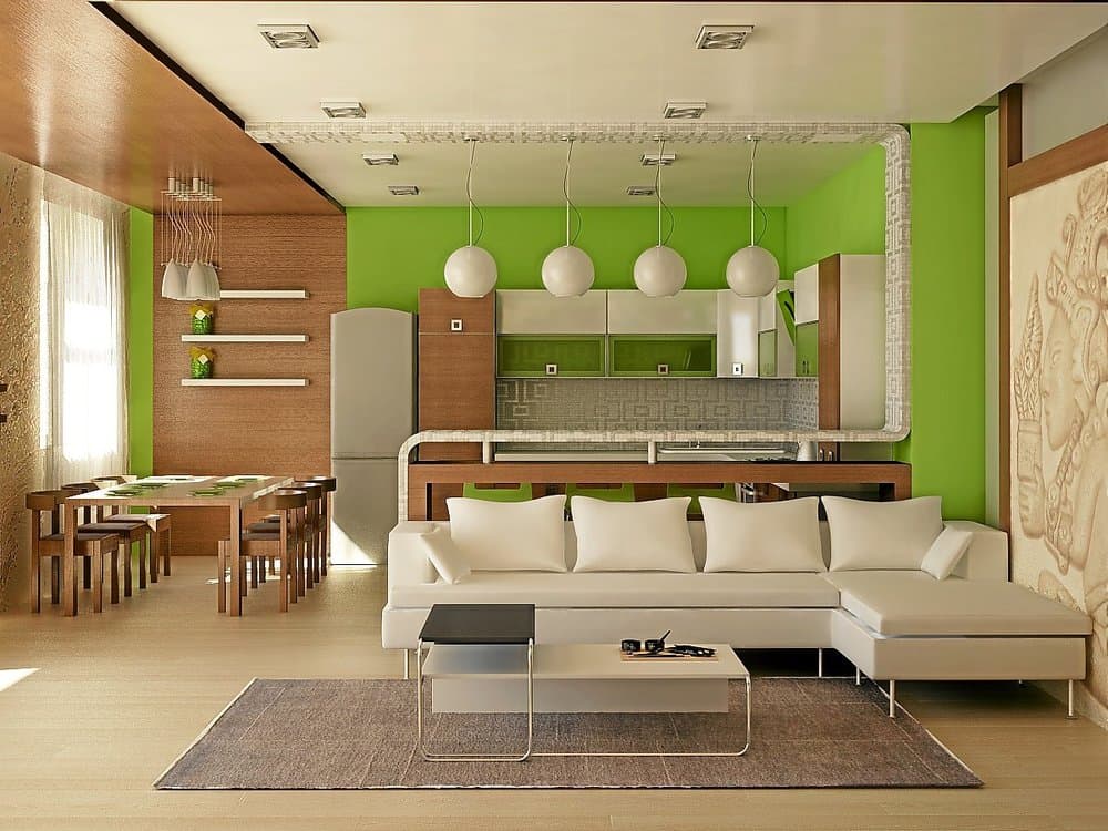 Популярные расцветки для кухни-гостиной 18кв.м.