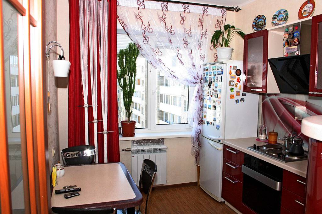 - Холодильник — если вынести его на балкон или в коридор нельзя, лучше всего установить его в углу рядом с окном, но подальше от батареи. Можно также использовать небольшой холодильник без морозильной камеры, встроенный в кухонный гарнитур.
