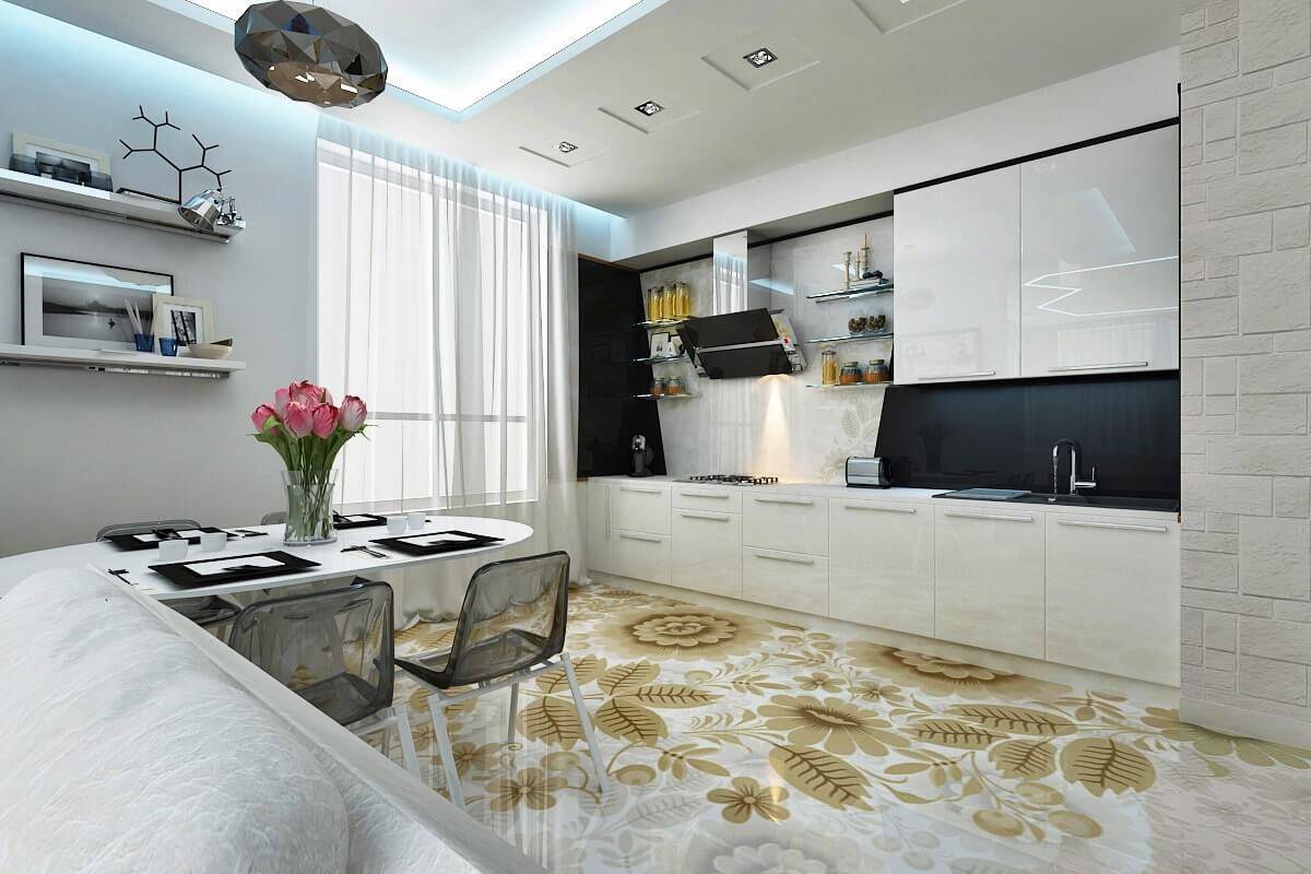 Однако керамогранит и наливной пол весьма дорогие и холодные. Поэтому придется заранее продумать систему подогрева. Если вы предпочитаете бюджетные варианты, то остановите выбор на ламинате и линолеуме. Служить они будут меньше, однако смотрятся весьма эффектно.