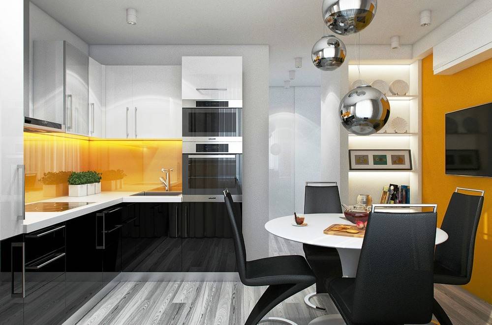 Это придаст кухне определенную изюминку, и позволит зрительно увеличить габариты помещения.