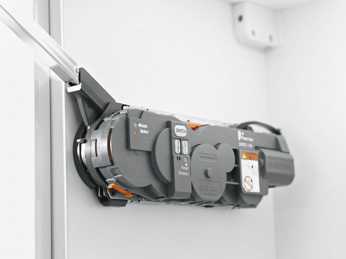 | Рис. 37. Кстати, вот так вот выглядит электропривод для Aventos, чтобы можно было открывать большой фасад по принципу Push On. На фото электропривод для складных фасадов AVENTOS HF |
