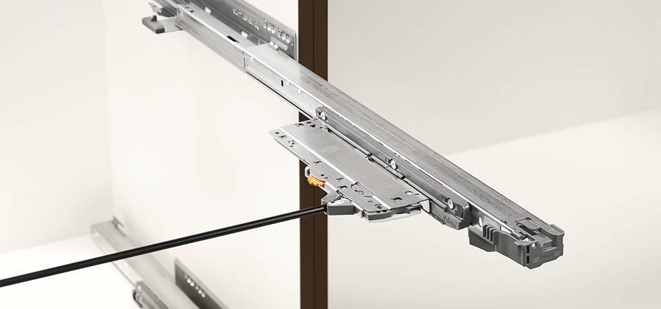 Установка механизма Tip-on возможна только с направляющими Tandem без доводчика, причём для направляющих как полного, так частичного выдвижения.