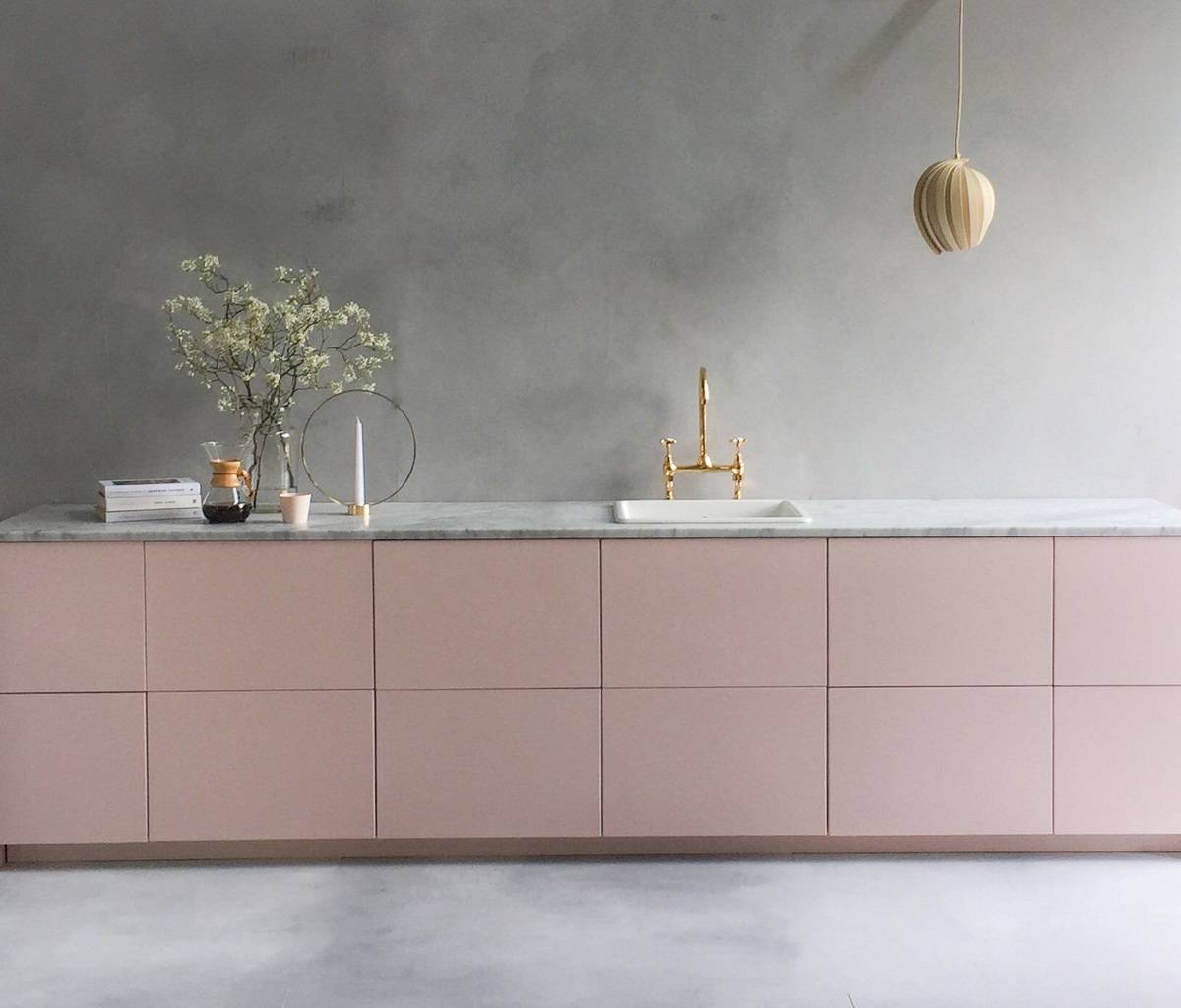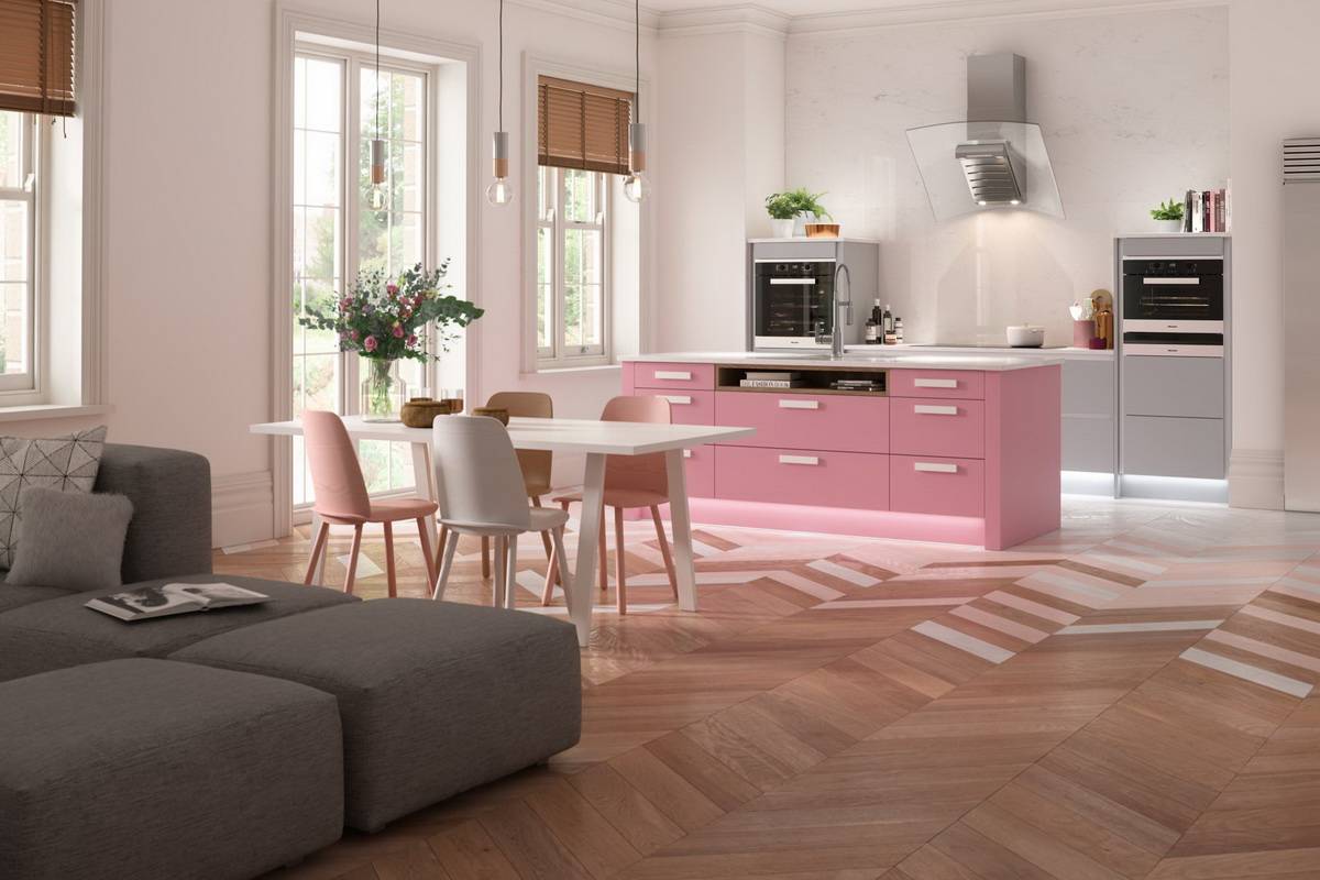 Светло-розовый визуально расширяет пространство. Чтобы данный эффект заиграл в пространстве вашей кухни, используете его по минимуму, сделав акцент только в одной части помещения.