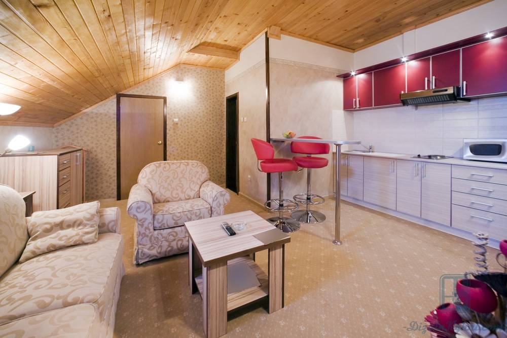 Мебель может быть выполнена из любого материала. Главное условие таково: она была той же расцветки, или в том же цвете, но в других тонах, что и кухонный гарнитур.