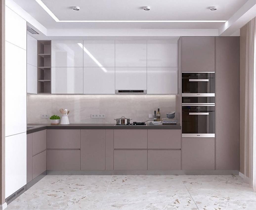 4. Кухня капучино, глянцевая или матовая, может быть изготовлена из любых материалов: пластик, пленочная МДФ, крашеное дерево, акриловые столешницы и фартук. Этот оттенок будет прекрасно смотреться как на фоне светлых стен, так и на темных.