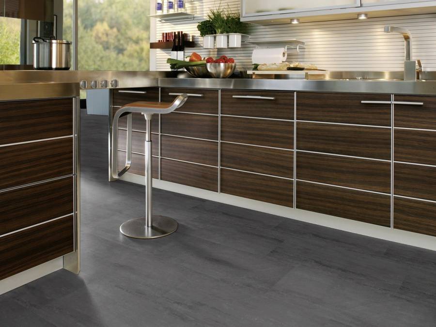 Напольное покрытие в интерьере кухни венге может быть как светлым, так и темным, в зависимости от общей концепции. Выполнять его можно из любого материала, в числе которых паркет, ламинат, плитка, керамогранит, наливная конструкция