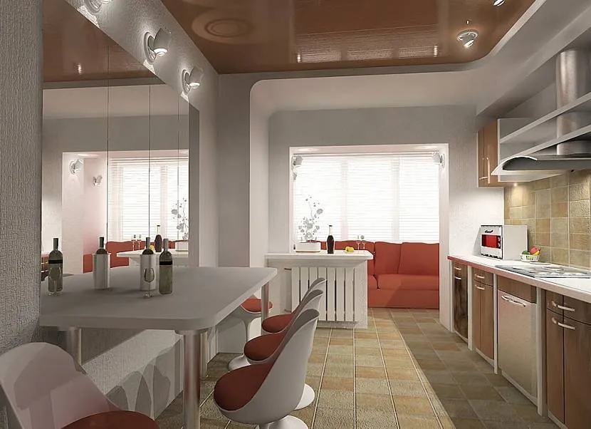Дизайн кухни 14 кв. м с выходом на балкон