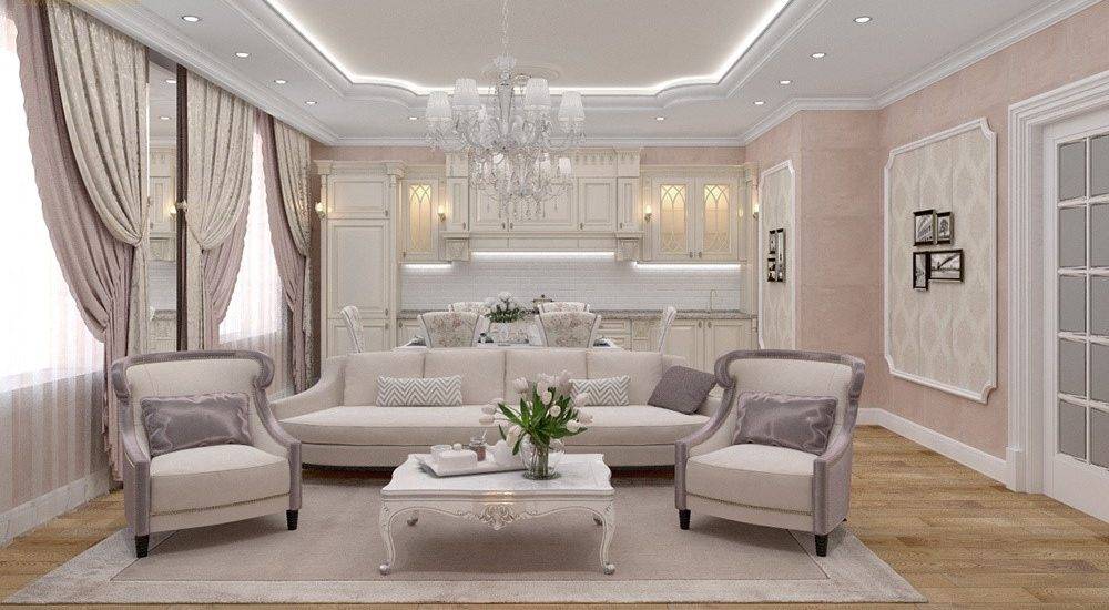 Многоуровневые потолки в неоклассицизме используются с осторожностью, они должны смотреться как продолжение гарнитура или инструмент зонирования (для кухни-гостиной).