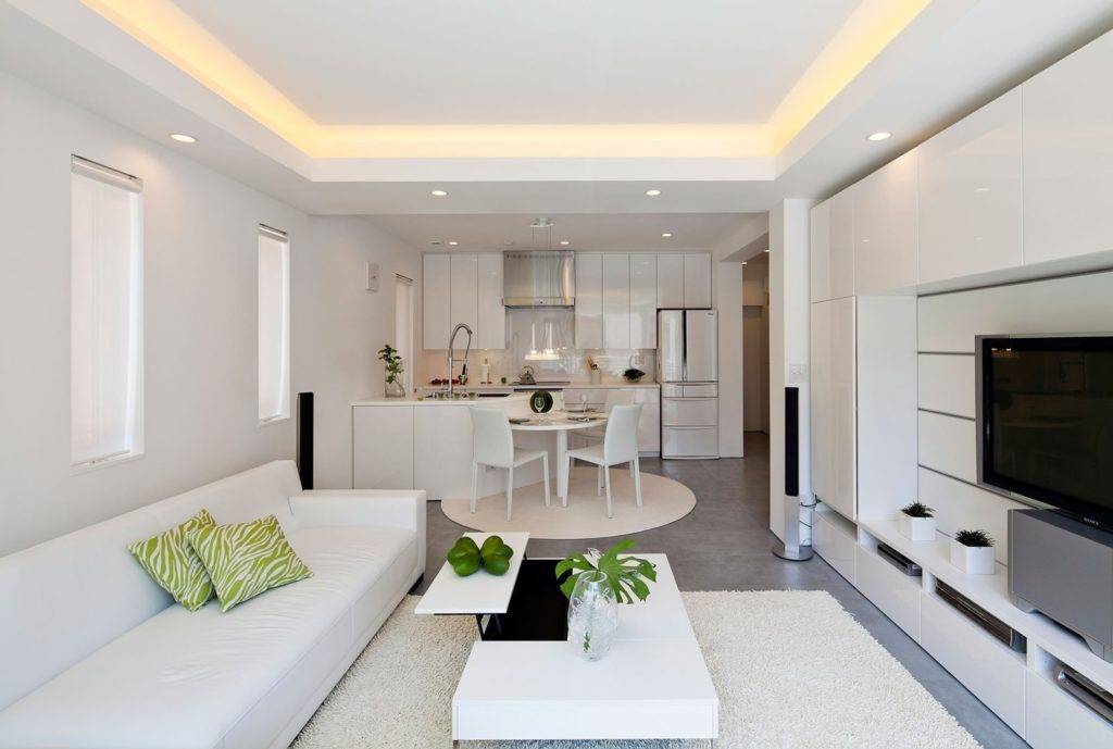 Определив расположение и планировку кухни, стоит заняться проектированием всей комнаты. Остаток пространства можно посвятить только гостиной или же поделить между гостевой и столовой зонами.