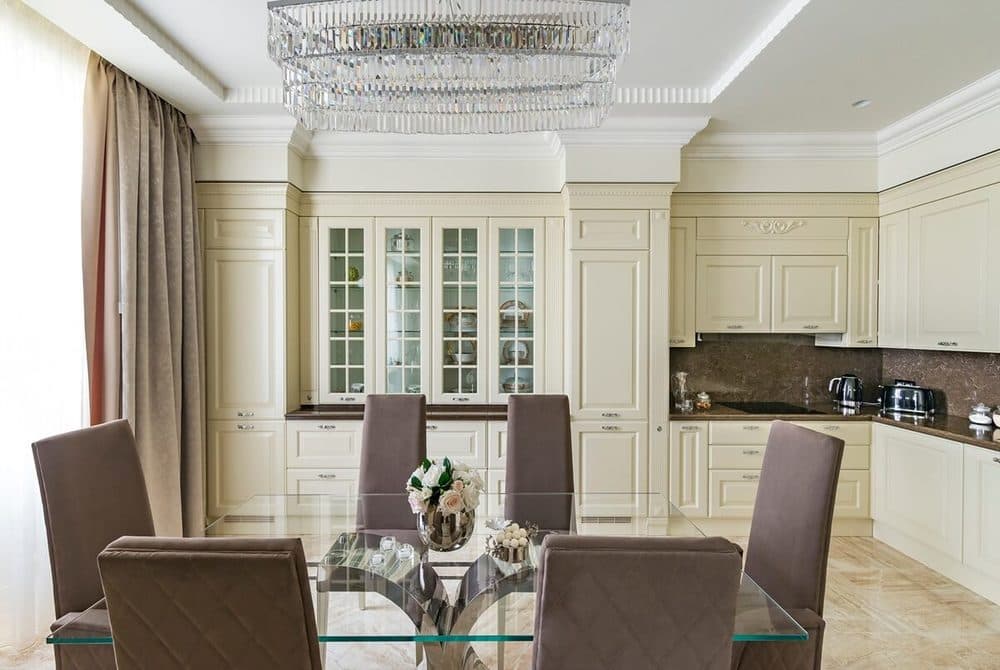 Любые его оттенки от слоновой кости до бежевого идеально подходят для оформления кухни в стиле неоклассики. Светлые тона облегчают интерьер, добавляют ему света и воздуха.