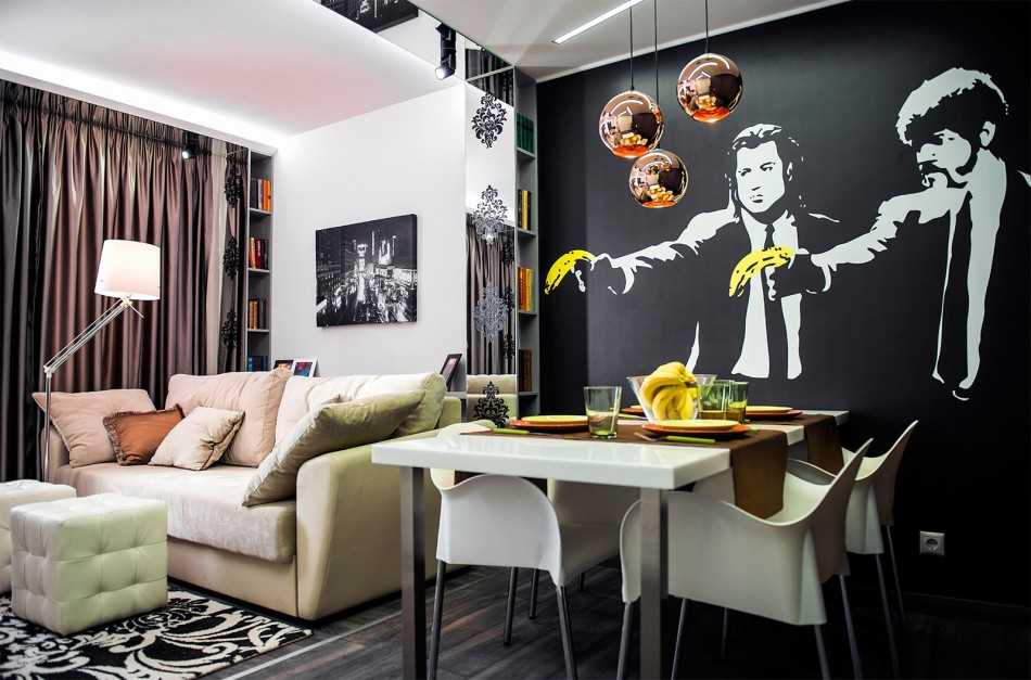 Совмещенная комната или квартира-студия должна иметь общую цветовую гамму и один стиль во всём.
