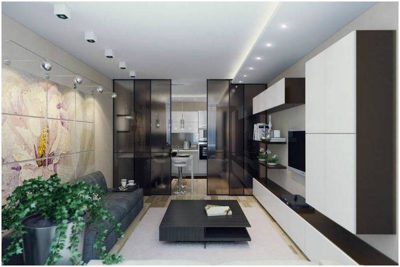 Результатом перепланировки становится пространство, которое нуждается в грамотном зонировании. Его проводят разными способами, используя предметы мебели, декоративные перегородки и раздвижные двери. Также пространство зонируют, используя отделочные материалы с разной текстурой и цветом; для каждой зоны обязательно разноуровневое освещение.